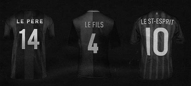 Em sembla, ja em perdonaran si m’erro, que ahir, el diari esportiu francès, l’Equipe, va treure un número dedicat completament a la història del Barça on s’hi podia veure una imatge amb tres samarretes blaugranes en les quals hi figurava el següent: a la primera hi havia com a dorsal el número catorze i en el lloc del nom del jugador s’hi llegia “Le Pere”; a la següent el número era el quatre i el nom “Le Fils” i a la darrera hi teníem un deu a sota de “Le St. Esprit”. Les tres samarretes, com es poden imaginar, feien referència a Cruiff, Guardiola i Messi.